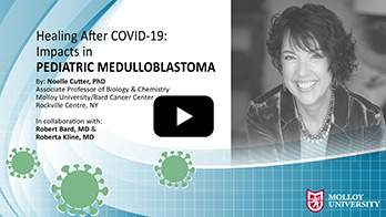 This video presentation is part 2 of Dr. Noelle Cutter's 2021 presentation on the Impact of Covid-19 in Pediatric Medulloblastoma. It includes a collaboration with Dr. Robert Bard (cancer imaging specialist) and Dr. Roberta Kline (leading genomics advisor). Medulloblastoma (MB) is a devastating illness and is the most common pediatric malignant brain tumor. It is predominantly treated with cytotoxic and nontargeted approaches. Survivors of MB also suffer from severe treatment-related effects of radiation and chemotherapy keeping mortality rate high.