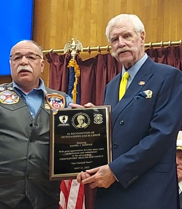 I had the distinct pleasure of presenting the first "BARD AWARD' (fully known as 'The Robert L. Bard Distinguished Advocacy Leadership Award') to Dan Noonan for his 45+ year commitment and his personal mission of public advocacy is best to be described as a work of true art. We watched him diligently reshape and re-polish his story in every turn, perfecting a vivid picture about the 1975 fire- leaving all audiences with a true-to-life experience after each of his presentations. His latest depiction was undoubtedly his best version yet- adding even more detail and inflection and passion to the story. He brought us there as a young probie jumping into action that fateful day, unaware of the many dangers and health implications. (see complete coverage)
