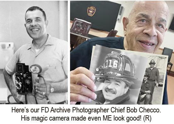 "History is Eternal": NY FD Archivist Chief Bob Checco Looking back at the massive collection of photos in his personal vault, Chief Bob Checco assembled this priceless treasure trove of experiences, stories and photographic portraits about many of the retired firefighters of New York in one globally-accessible set of galleries (see: www.FDPixGallery.com). Thanks to his remarkable memory for the many names and faces in this tremendous collection of never-before-published photos, we can finally enjoy coursing through the generations of FD history as far back as his 'probie' years when he snapped that first shot in 1958. This is Chief Checco's gift to the surviving members of the FDNY and their families