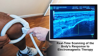 One of the most comprehensive ways to confirm the results of any treatment is by clinically tracking the body's physiological response from underneath the skin. Diagnostic imaging captures measurable data about the injured or inflamed area, allowing both clinicians and patients the ability to identify therapeutic progress in real time. AngioFoundation researchers have united with innovators in the science of PHOTOBIOMODULATION (PBM) and PULSED NEUROMAGNETIC technologies to form this unique Image Guided protocol. Candidly called "Scan & Treat", imaging specialists may have finally closed the gap between non-surgical regenerative technologies and the real-time monitoring of its effects on the body. To collect quantitative biometrics through ultrasound and elastography is now available at one of our collaborative DEMO DAYS at the AngioFoundation headquarters (Soon to be erected as Bard Diagnostics Lab).