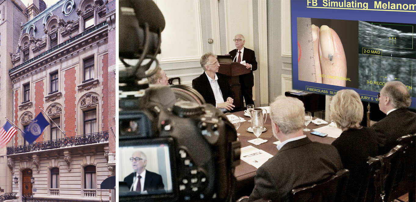 May 10, 2018- NYC; The LOTOS CLUB hosted the 2018 speaker series with Dr. Robert Bard's opening presentation on Early Detection & Prevention by NYCRA (New York Cancer Resource Alliance) and endorsed Dr. Bard to launch this theme because of his expanded knowledge in today's modern diagnostic technologies and non-invasive applications including the 4D Doppler ultrasound technology - much of which has been driven by European medical influence for the cancer treatment community. Dr. Bard is an internationally recognized leading expert in the use of this process for the screening, scanning and pre/post procedural monitoring of Breast, Prostate & Skin Cancers. He is also known for his public mission to replace surgical analysis of tumors with his coined "digital biopsies". Dr. Bard gave the standing-room only audience at the LOTOS CLUB an astounding look at the effectiveness of his imaging process to the surgical chain. He shared images of actual patient cases including the study of blood flow in tumors, behaviors of cysts, foreign bodies in trauma cases, fracture analysis and proven ways that cancers can be safely detected, studied and even treated with the use of non-surgical means. The high accuracy of 3D-4D Histogram analysis allows cancer treatment to be implemented without invasive biopsies that may spread tumor cells. (full article)